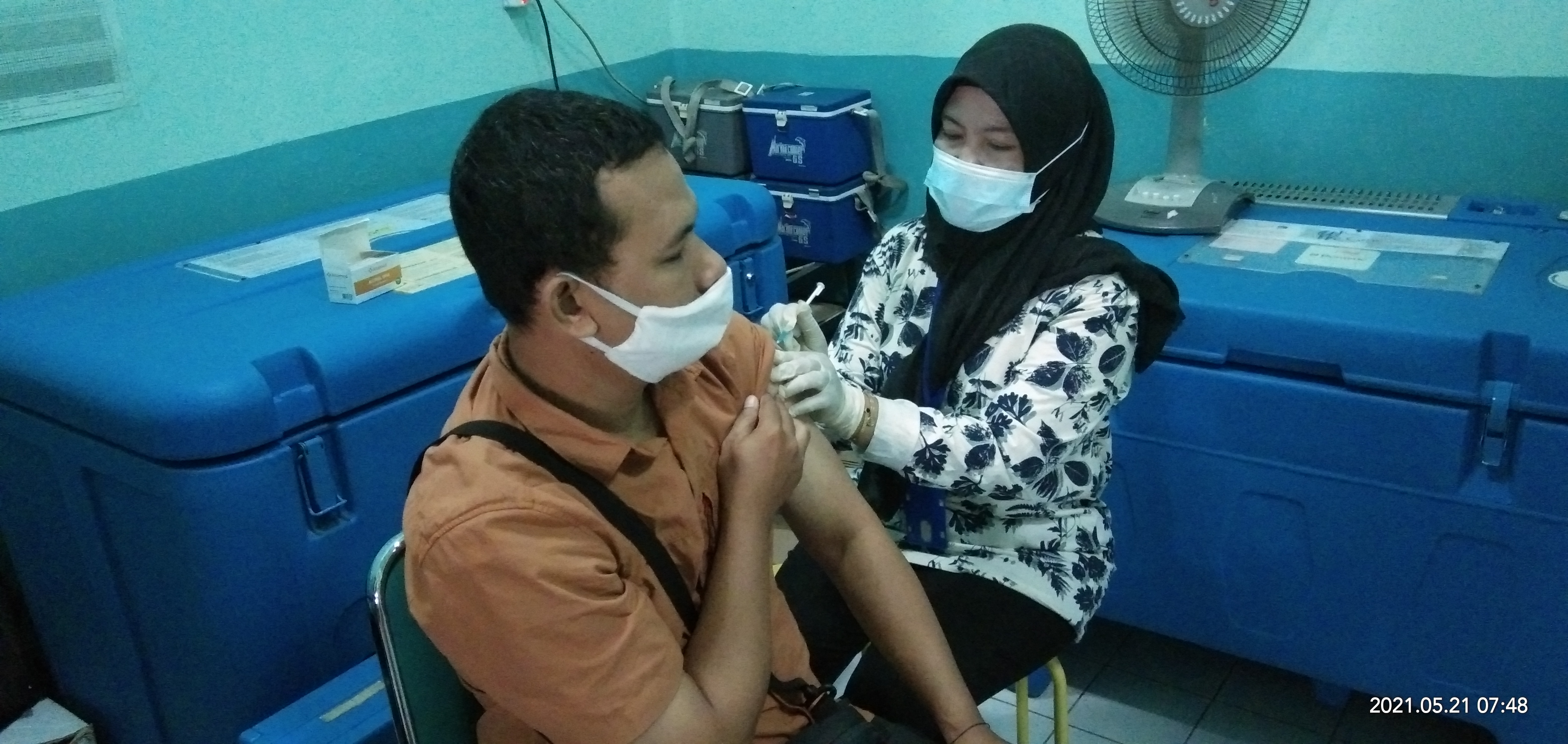 Bapak M.Yusuf Effendi, guru Bahasa Inggris SMA Negeri 1 Dempet, melakukan vaksinasi tahap 1 di Puskesmas Dempet.